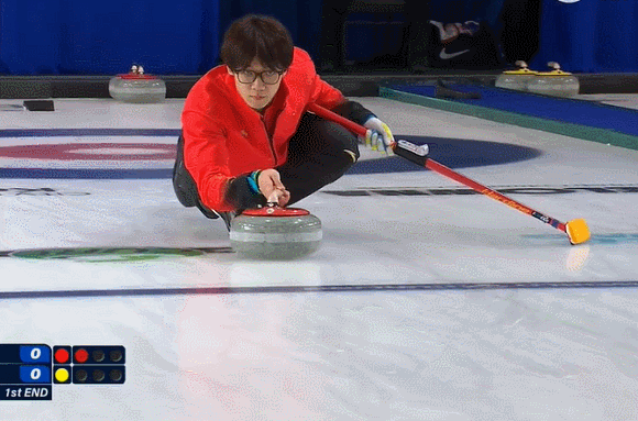 于森最后一投完美投进圆心,休伊特封堵了线路,叶紫萱旋壶还差了一点;中国队开局偷到1分。