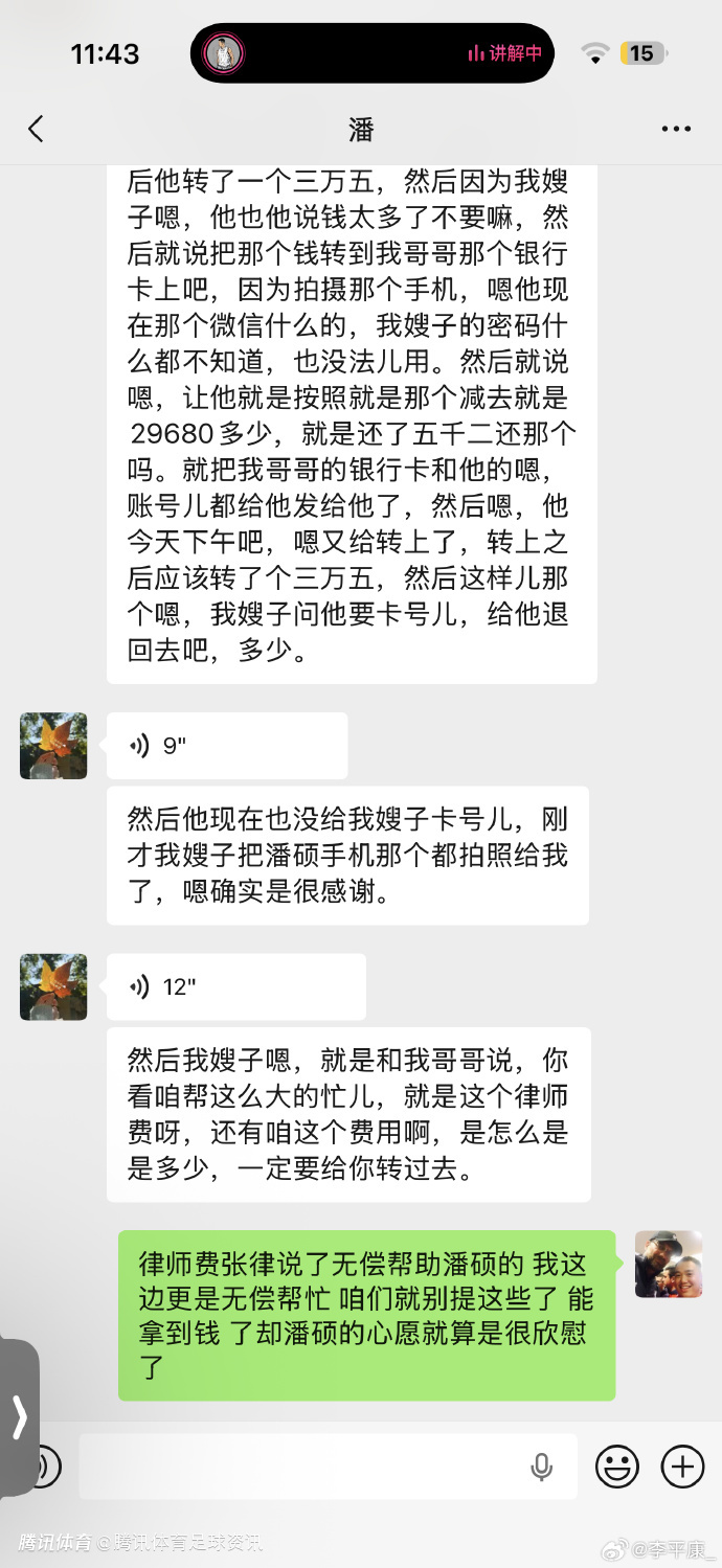 2025-12-21 16:20北京时间12月21日,媒体人李平康昨日更新消息,戴琳已把拖欠球迷的钱还清,并且向潘硕母亲多转了5000多块。