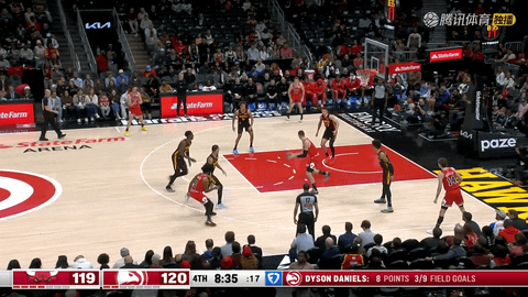 第一节还剩11分44秒时,奥孔古接特雷-杨助攻空切扣篮,打破场上僵局;紧接着在还剩11分29秒时,奥科罗空切挑篮命中予以回应,双方比分来到2:2。第一节还剩11分01秒到9分49秒期间,公牛外线发力,武切维奇、怀特和布泽利斯先后命中三分,将比分从2:2拉开到13:5。