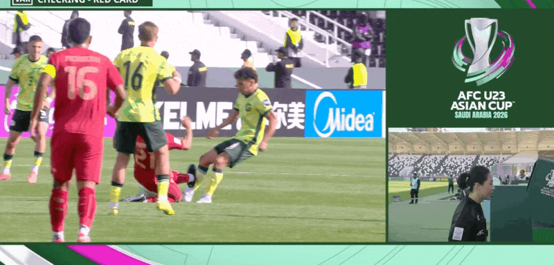 半场战报-领先后送红牌+对手瞬间反超,10人泰国U23暂1-2澳洲