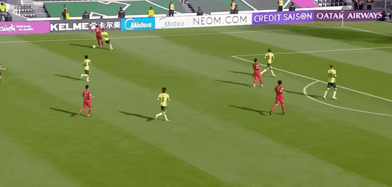 第11分钟,詹森飞铲对手,VAR介入后将其罚下,泰国队剩下时间10打11。