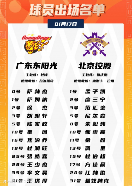 北控主力外援里勒与内线主力沈梓捷因伤缺席,北控新援、老将罗汉琛尚未迎来加盟首秀,广东继续缺少崔永熙、麦考尔。