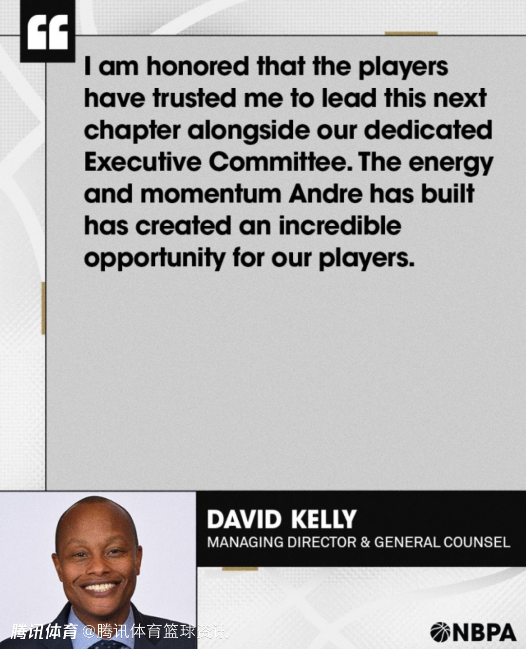 大卫-凯利接受采访时表示:“我很荣幸球员们信任我,让我与我们敬业的执行委员会一起,带领大家开启下一篇章。安德烈(伊戈达拉)所营造的活力与势头,为我们的球员创造了绝佳的机遇。”