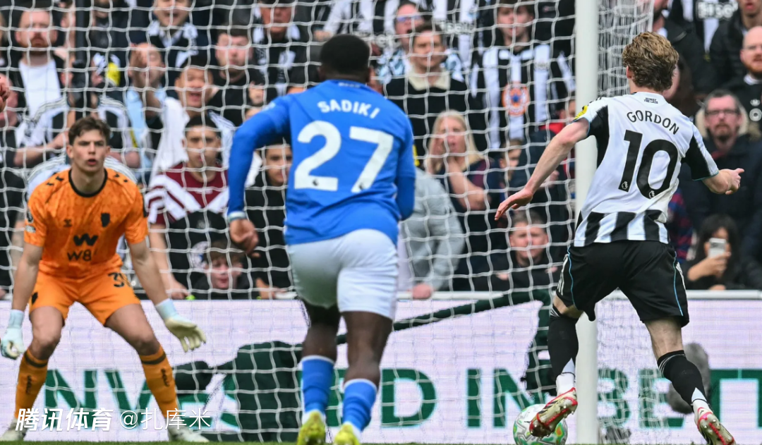 第10分钟,桑德兰后卫送礼,戈登拿球摆脱防守小角度得手,纽卡1-0。