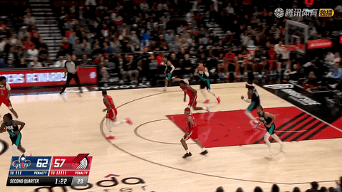 此后鹈鹕通过多次空接配合与反击将比分拉开。第二节还剩2分49秒至还剩1分10秒时,卡马拉和阿夫迪亚连续在外线发炮,将比分从60:54追至62:60,阿夫迪亚在还剩1分10秒时命中追近三分。
