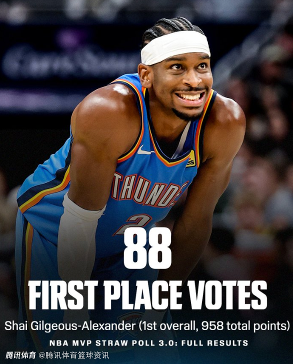 ESPN公布最新一期MVP模拟投票结果:亚历山大居首 文班约基奇位列其次