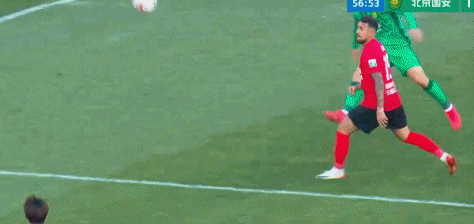 比赛的第56分钟,张稀哲分球,塞尔吉尼奥右路横传,法比奥头球冲顶破门,1比2!