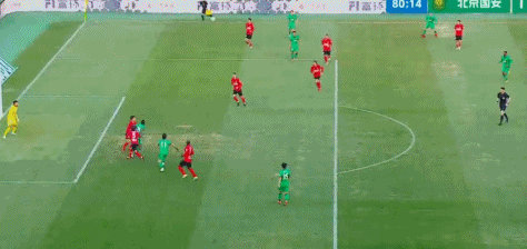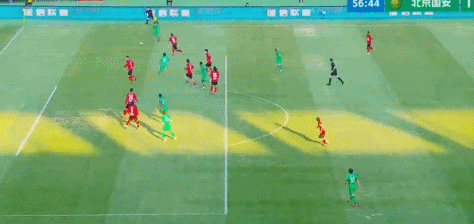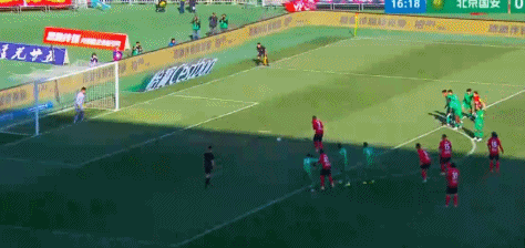 开场仅仅35秒,韩镕泽冲出禁区双手将球击出。主裁判向韩镕泽出示黄牌,并且判罚给北京国安禁区外任意球。