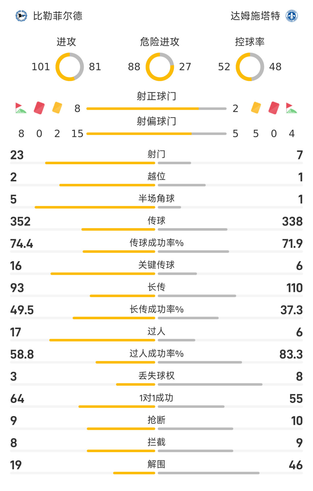 德乙战报:特拉洛维奇破门,比勒菲尔德2-1战胜达姆施塔特