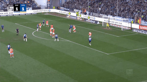 比勒菲尔德首发阵容:1-科斯肯、31-克诺赫、17-阿恩斯科尔、24-兰纳特(88’2-哈格曼)、5-鲍尔、6-科伯兹、11-格罗多夫斯基(69’27-博阿基耶)、21-鲁索、14-莫穆拉(69’28-乌德里基斯)、38-沃尔(88’19-格罗斯)、7-特拉洛维奇(75’22-罗切特)