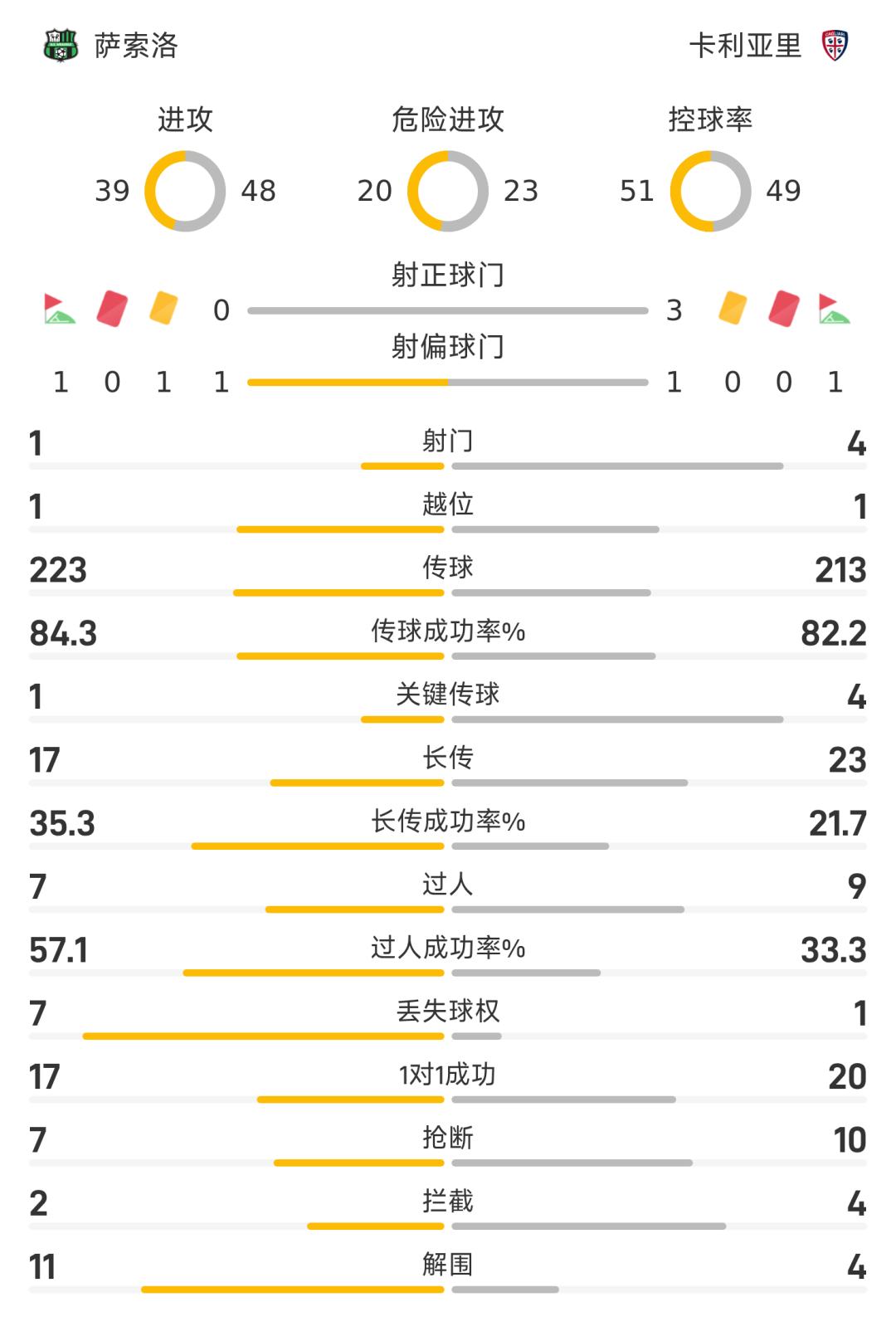 意甲半场:埃斯波西托点射建功,萨索洛0-1卡利亚里