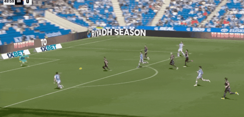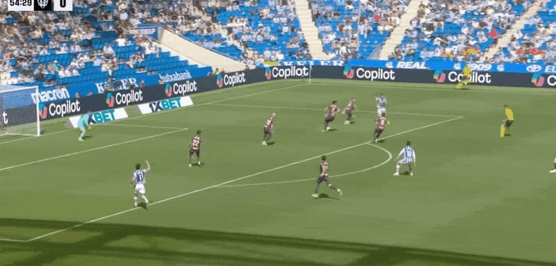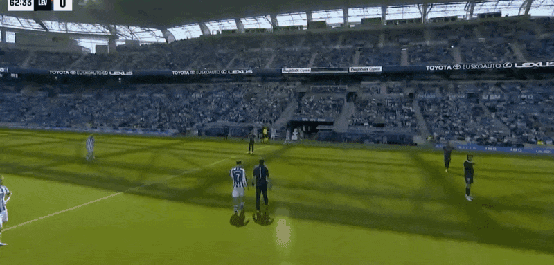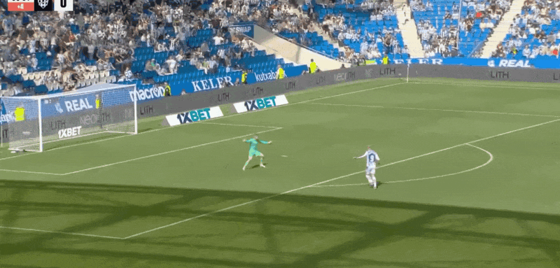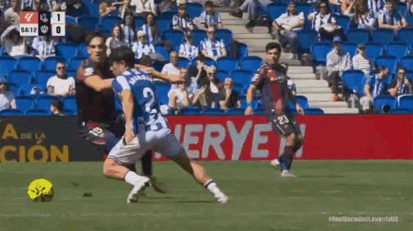 30’瑞恩出击没能碰到皮球,马丁头球破门,皇家社会1-0莱万特