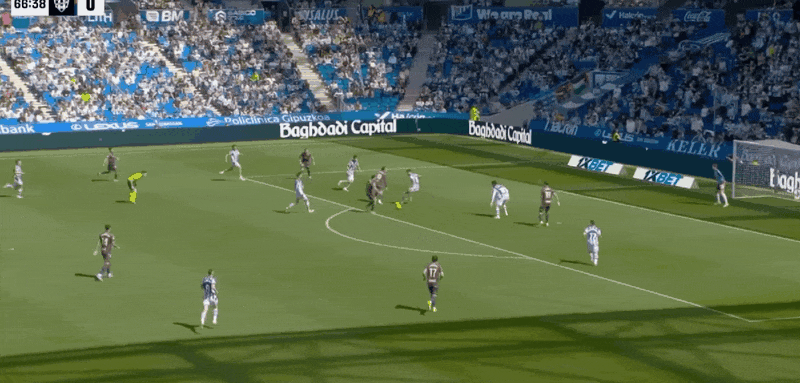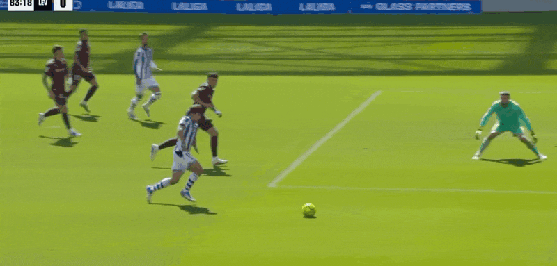 83’马林右路横扫门前,门德斯推射破门,皇家社会2-0莱万特