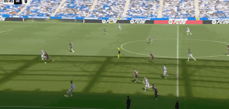 19’阿兰布鲁右路横敲,格德斯跟进抽射攻门稍稍偏出