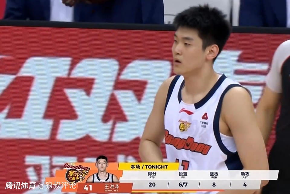 全场比赛,王洪泽出战29分45秒,投篮8中7,罚球10中8,得到22分8篮板4助攻2封盖,得分和篮板球都是创造生涯新高,加时阶段,冲击篮下完成暴扣,激情怒吼,帮助广东进一步创造优势。