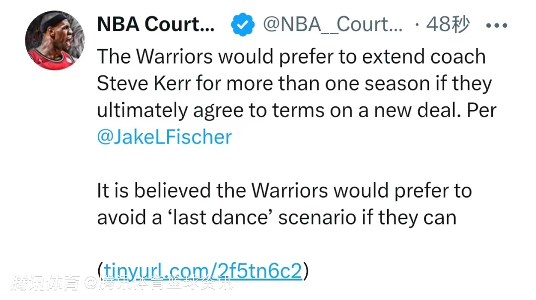 2026-04-08 23:30北京时间4月8日,据名记Jake Fischer消息,如果勇士最终与主教练科尔达成续约,球队更希望签下一份超过一年的合同。